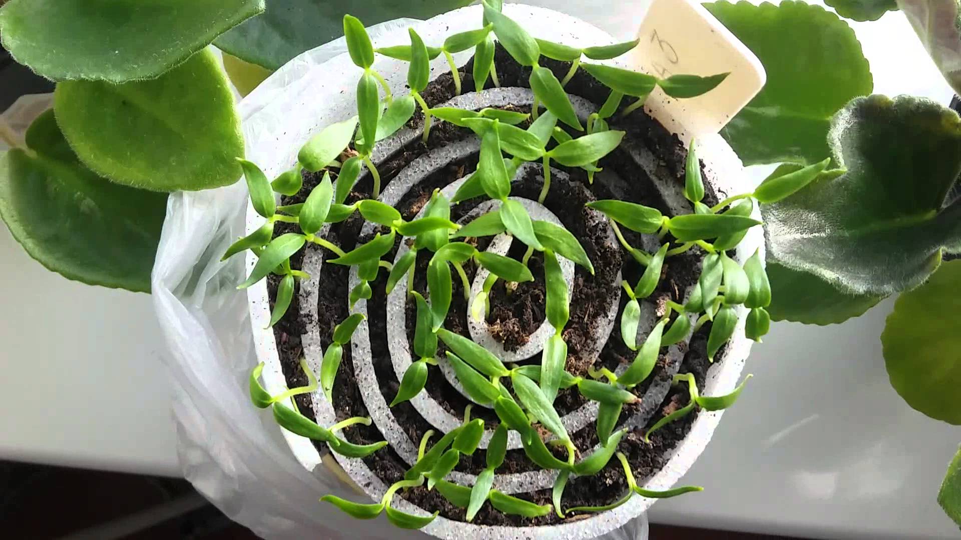 - целлофан задерживает влагу и обеспечивает парниковый эффект, поэтому времени на прорастание семенам требуется меньше;